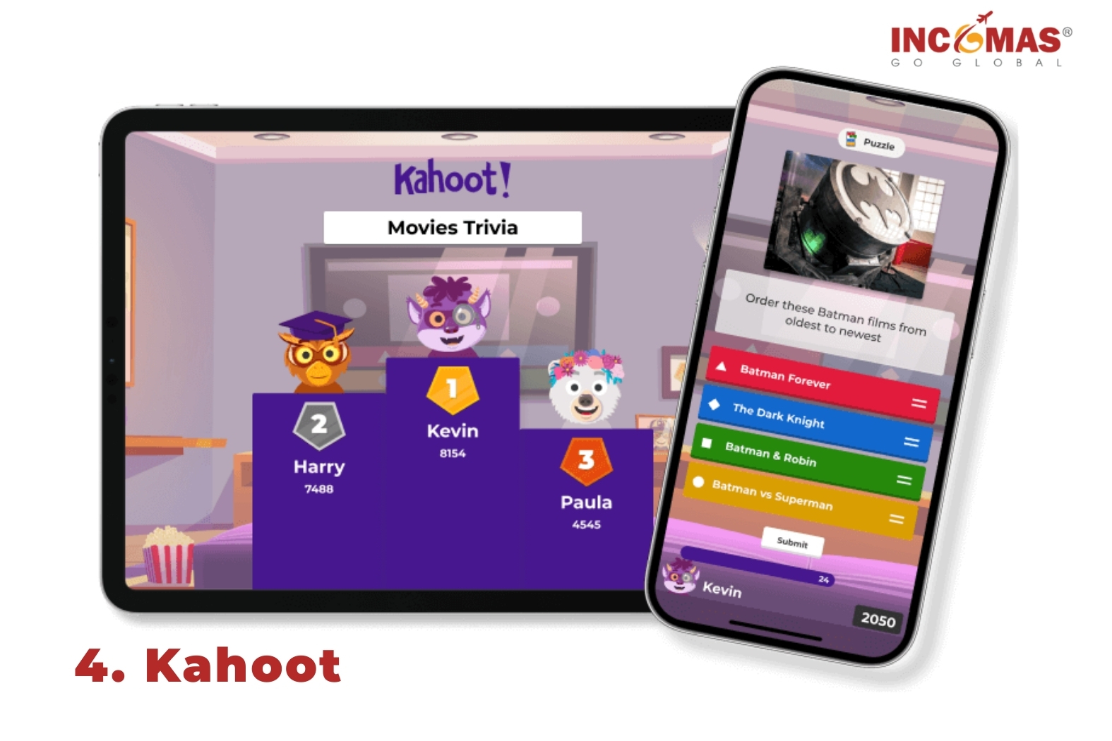 Kahoot là nền tảng quiz trực tuyến, kết hợp chơi nhóm hoặc cá nhân. Trẻ trả lời câu hỏi trắc nghiệm trong thời gian giới hạn, tạo ra tính cạnh tranh vui vẻ và hứng thú. Game Kahoot giúp trẻ rèn luyện kỹ năng nghe hiểu, đọc hiểu, phản xạ nhanh và tư duy logic. Đồng thời, Kahoot tăng sự tự tin khi tham gia học nhóm.